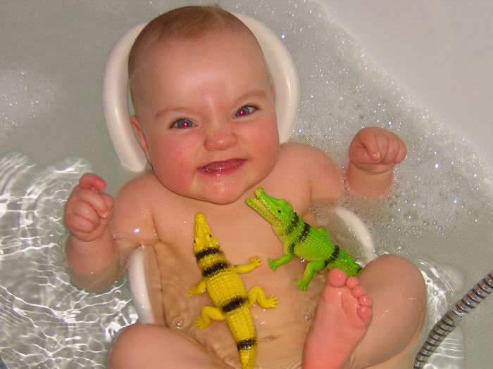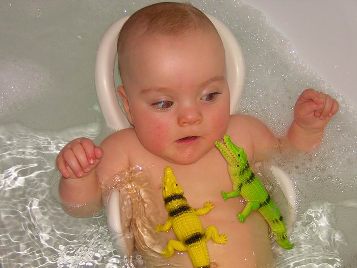 Maja´s erste Bekanntschaft mit den Krokodilen... erst skeptisch... dann happy über ihre neuen Freunde!