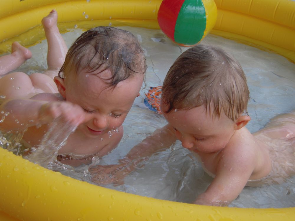 Little Luna, ah ist das toll im Planschbecken zu planschen... Wenn nur der Mike schon wenigstens selbst sitzen könnte...