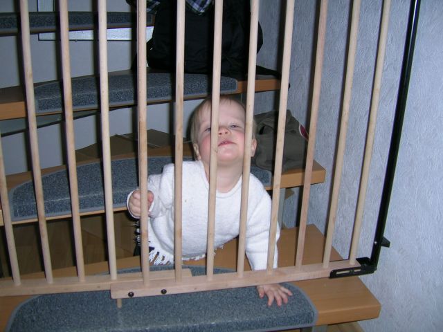 Wir müssen jetzt unsere Treppe von hinten auch noch dicht machen, Malina war ist durch die Stufe von hinten nach vorne durchgeklettert und war auf der anderen Seite vom Treppengitter, dass war nicht das erste Mal...
