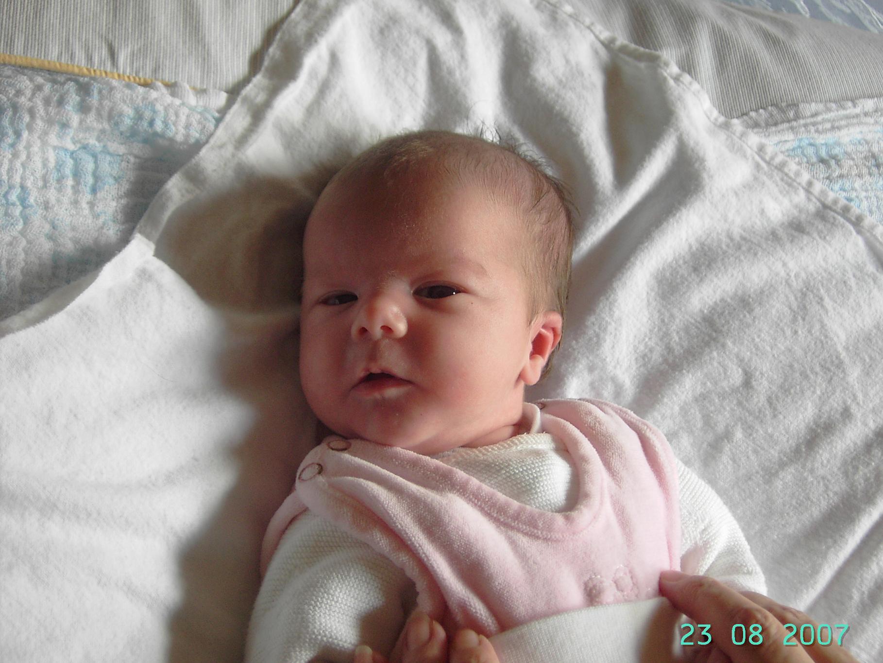 Die Kleine kam am 17.08. um 7:44 per Not-KS auf die Welt (geplant war der KS am selbigen Tag,allerdings um 10 Uhr),sie war 50 cm groß,3010 gr und KU von 34 cm und alles dran,was dran sein muß!!