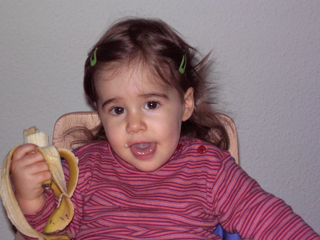 und weil sie so putzig ist, gebe ich noch 3 fotos vom 14.12. dazu (beim banane essen im hochstuhl)