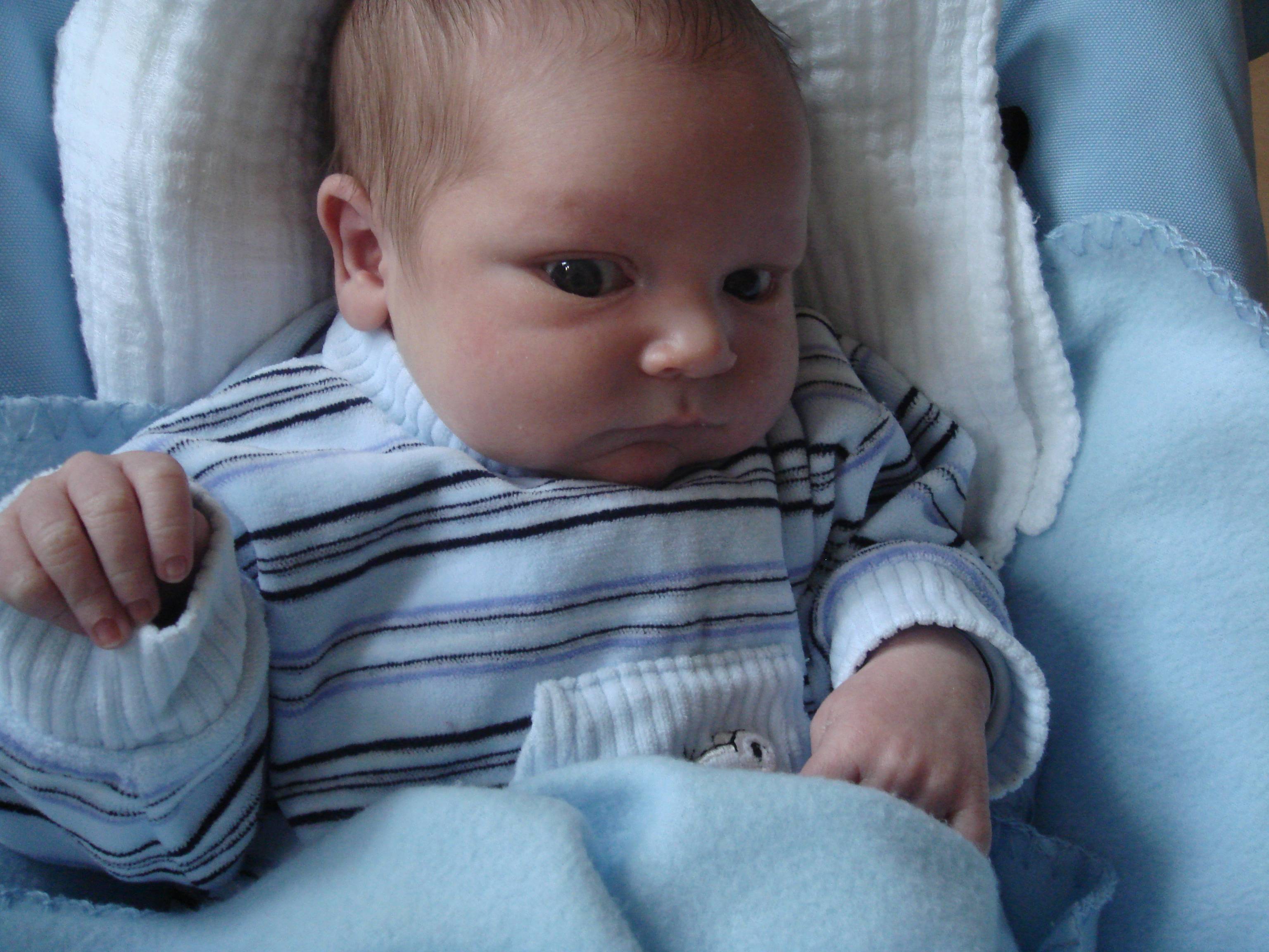 Hallo kleiner Malte du bist ja süß und so ein zufriedenes Gesicht machst du dir scheint es richtig gut zu gehen. Nochmal herzlich willkommen auf der Welt!!!!