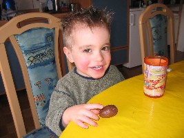 Weil ich beim friseur so lieb war, darf ich Mamas Nougat ei essen!!!!