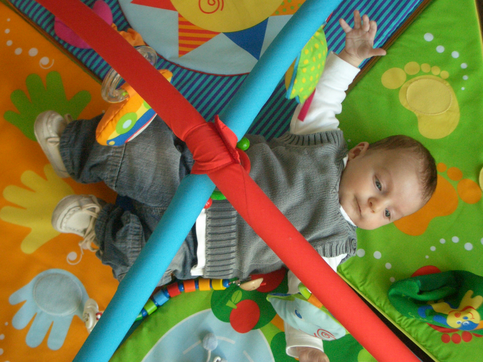 Hier seht ihr mich unter meinem Mobile beim Spielen. Wenn ihr mich hören könntet, wie ich dabei juchze