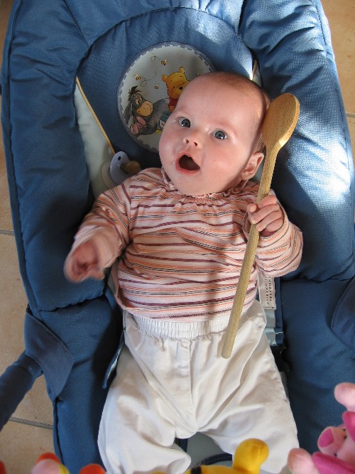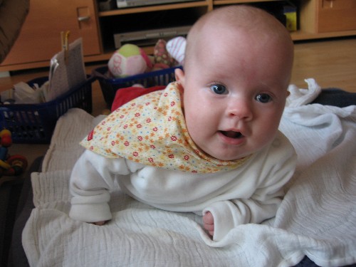 Isi hat sich am Sonntag das erste Mal vom Bauch auf den Rücken gedreht, Celine ist da einwenig faul