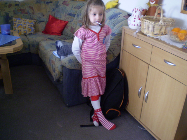 Heute morgen habe ich schon fleissig aufgeräumt und anschließend war ich einkaufen und bummeln. Habe noch ein Hemdglunker Outfit für die Maus gesucht, das fehlte noch und da ich in den ganzen 6 Jahren erst ein Prinzessinnenkostüm gekauft habe solllte sie heute halt mal noch was neues bekommen. Wurde aber auch wieder so gekauft das es längere Zeit passt. Naja, sie hat natürlich nicht nur ihr Prinzessinenoutfit, hier liegen viele Kostüme, wurden mir aber von meiner Schwester geliehen, nur Hemdglunker mässig ist oder war nichts dabei und da sie heute schon verkleidet in den Kiga kommen durften *hat Madame vergessen zu erwähnen - hatte aber zufällig ein rot/weisses Ringelshirt an* ...........