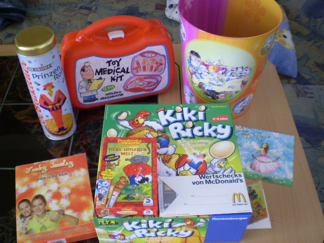War heute schon fleissig, habe heute morgen fix alles fertig gemacht, dann sind wir einkaufen gefahren und anschließend waren wir bei super schönem Wetter in der Stadt. Zuerst Bimmelbähnchen fahren, dann auf dem Marktplatz wo die Euro-Maus mit Clown Peppino war, danach waren wir noch in ein paar Läden und anschließend sind wir noch Karussel gefahren. Kaum zu Hause mussten wir Freundin Laura anrufen und dort spielt Vanessa jetzt. Tja, so bleibt mir Zeit euch endlich mal die Fotos von den Geschenken nachzureichen. Wer Fotos vom Kindergeburstag sehen will, einfach melden, diese muß ich dann aber per Mail verschicken.