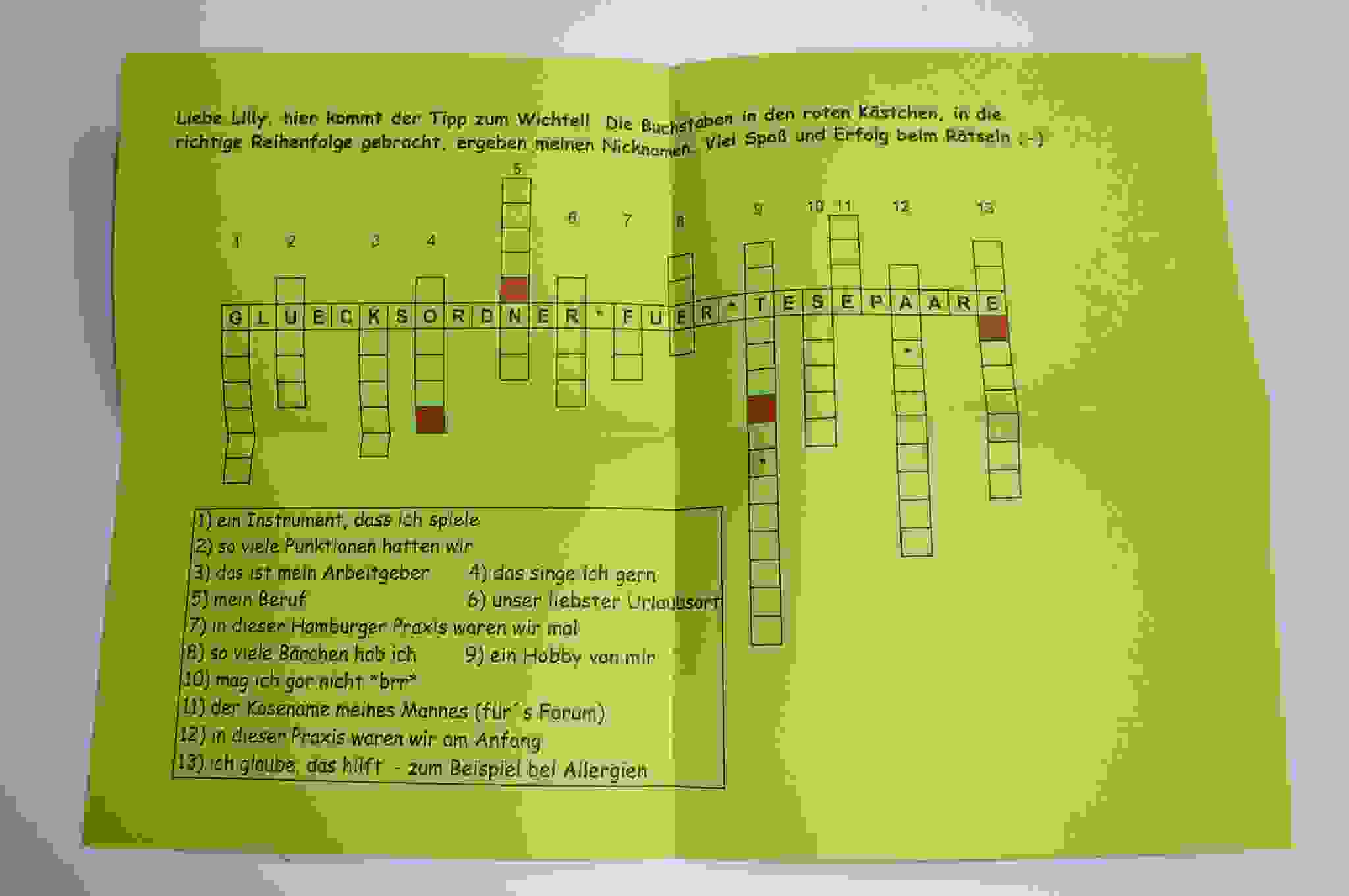 Der heiße Tipp meiner Wichteline war besonders toll. Ich hoffe, man kann es lesen. Es war ein Kreuzworträtsel, anhand der Lösung ich dann die Wichteline wußte