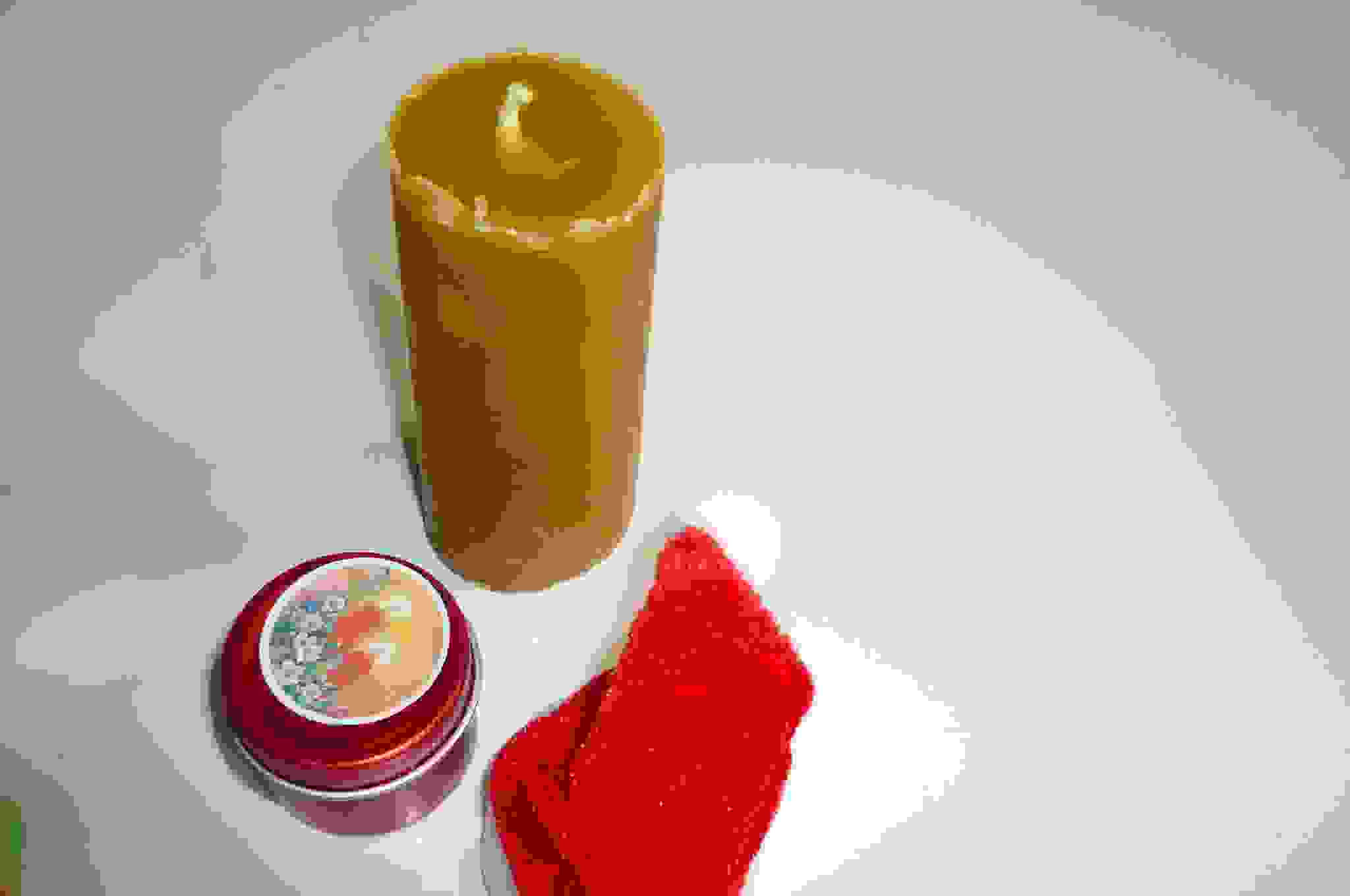 Nachdem ich genug an der kleinen Weihnachtskerze geschnuppert hatte, öffnete ich das nächste Paket. Und habe mich wieder ganz doll gefreut! Eine selbstgemachte Bienenwachskerze. Wieder was fürs Näschen *freu*