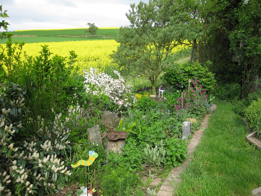 Ist nur ein Teil vom Garten, ich stell mal mehr rein, wenn die Rosen und Stauden blühen, wenns euch erfreut.