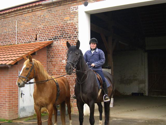 So also heute habe ich die Stute (den Fuchs) nochmal geritten, ohne zu longieren, es ginga uch ganz gut. Haben ein paar Stangen mit genutzt und auch einen kleinen Sprung gemacht. Dann war heute noch der Schmied da und hat der Stute ihre Füße wieder schick gemacht. Nur gut das ich oma hier habe, denn als ich fertig war mit dem Pferd war papa noch arbeiten abers Kind schon Bettfertig und ich brauchte nur noch eine Geschichte erzählen. Du siehst also Davina ich könnte auch nicht so wie ich will wenn ich oma nicht hätte. Und glaube mir als Richard noch kleiner war ist es mir noch schwerer gefallen ihn abzugeben. Jetzt sagt er was er will und ich finde es so toll das die beiden sich so gut verstehen. Er war auch schon so oft so gemein zu ihr.