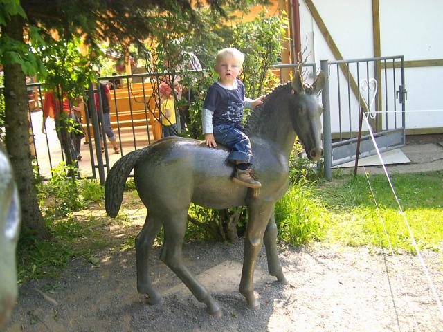 Nein das Pferd steht in Meura, dort wo ich gelernt habe. Es ist ein Bronzepferd namens Halla. Eine der ersten Haflingerstuten aus dem Gestüt.