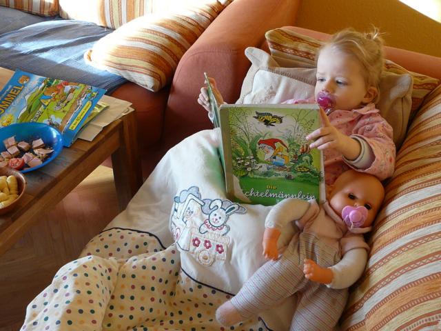 aber was gut ist... Ch. kann jetzt sagen, was ihr weh tut, ob es ihr kalt oder warm ist, wenn sie trinken will und das sie kein Appetit hat und somit ist es echt viel einfacher. ich habe ihr heute auch nen Lager im WoZi gebaut und sie lag ganz brav und schaute Bücher oder guckte DVDs. voll süss. aber ich möchte das sie endlich gesund wird