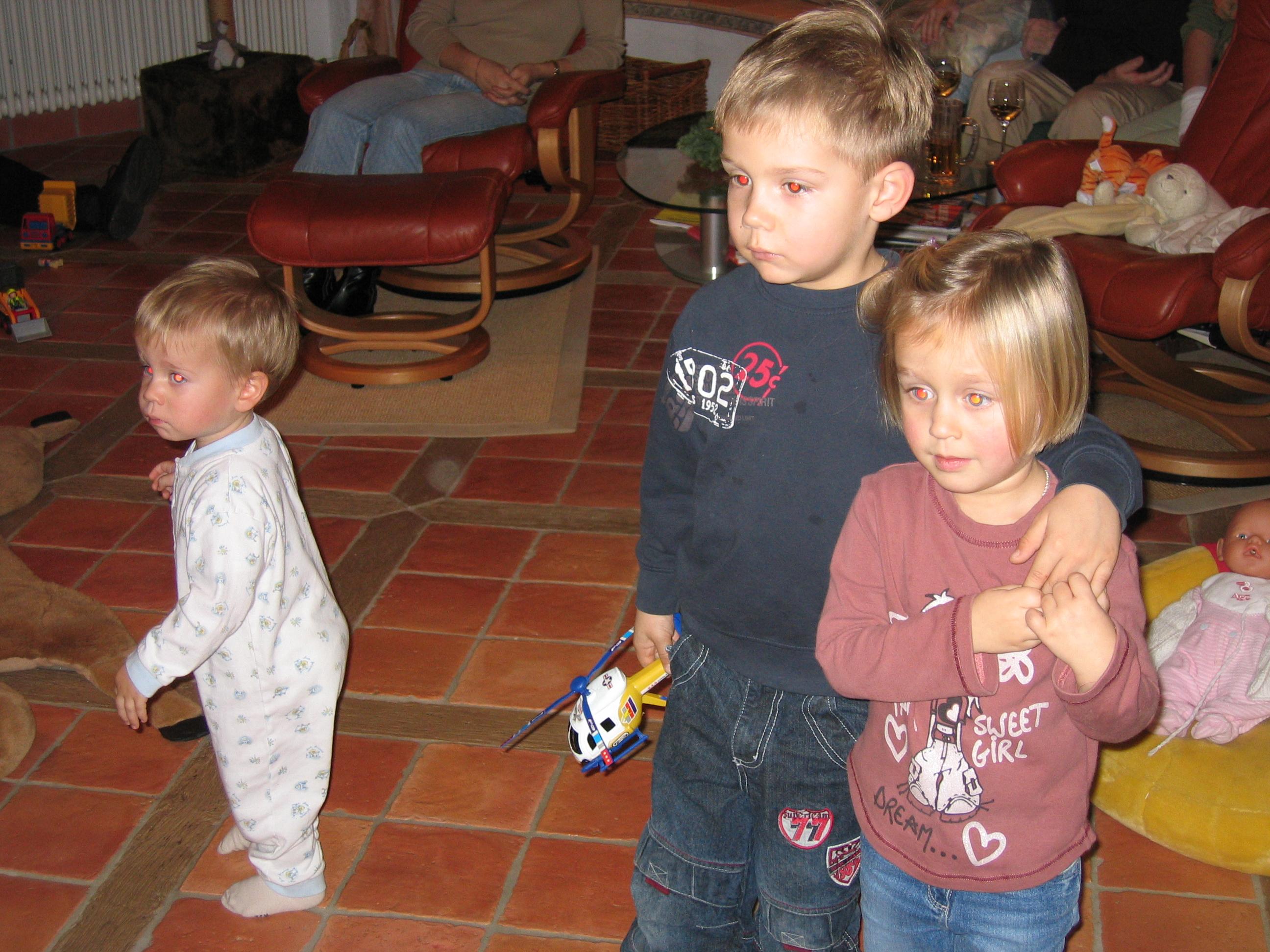 Linus war respektvoll auf opas Schoß gesessn und antwortete nichtmal mit seinem gewohnten jaaaaaaaaaaaaa als der nikolaus ihn fragte ob er immer lieb war- nein er schüttelte energisch den Kopf *g* wie ehrlich er war *g* Aber heute Nacht ist der Abend wohl mit ihm umgegenagen, denn zwischen 23 Uhr 30 und 2 uhr 30 rief er mindestens 7 mal nach mir... *gähn*