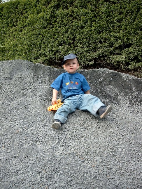Ich hänge Euch noch zwei neue Bilder von Maurice an...wir haben zur Zeit eine große Baustelle vor der Tür,das findet er prima :-)...eben ein richtiger Junge...hihihi.