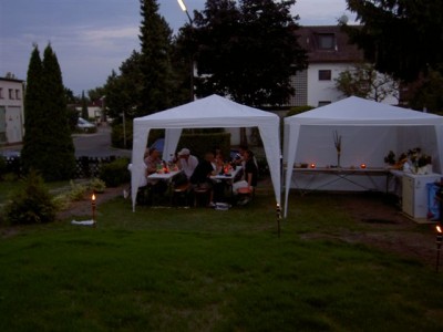 Unsere Feier war echt super. Essen und Getränke waren reichlich da (von 42Steaks wurden nur 15 und von 50 Würstchen nur 25 stk gegessen :cry: , der Rest wurde eingefroren). Leider mußten wir viel Salat wegschmeißen, obwohl wir noch was mitgegeben haben. Ich hatte noch nie so viele Leute zu bewirten, aber es lief alles super. Ich weiß Eigenlob stinkt, aber mein freund und ich haben es echt toll gemacht. Die Deko mit Blumen und vielen Kerzen sowie den Bambusfackeln im Garten waren echt super. Alle waren gut drauf und ich hatte einen kleinen sitzen *g* . Die letzten sind dann um halb zwei gegangen und wir haben dann gleich noch alles aufgeräumt. Versuche euch noch ein Bild mitzuschicken.