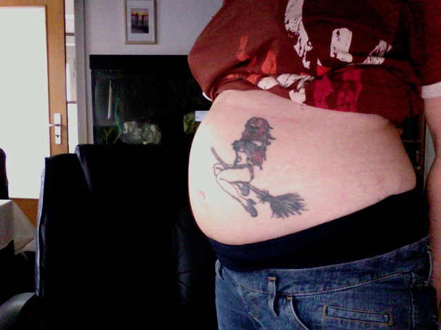 viollette *rotfl* *rotfl* *rotfl* ich finde dein Bauch schön! :prima: Was macht die Tatoo? Neigst Du zu SS-Streifen?
