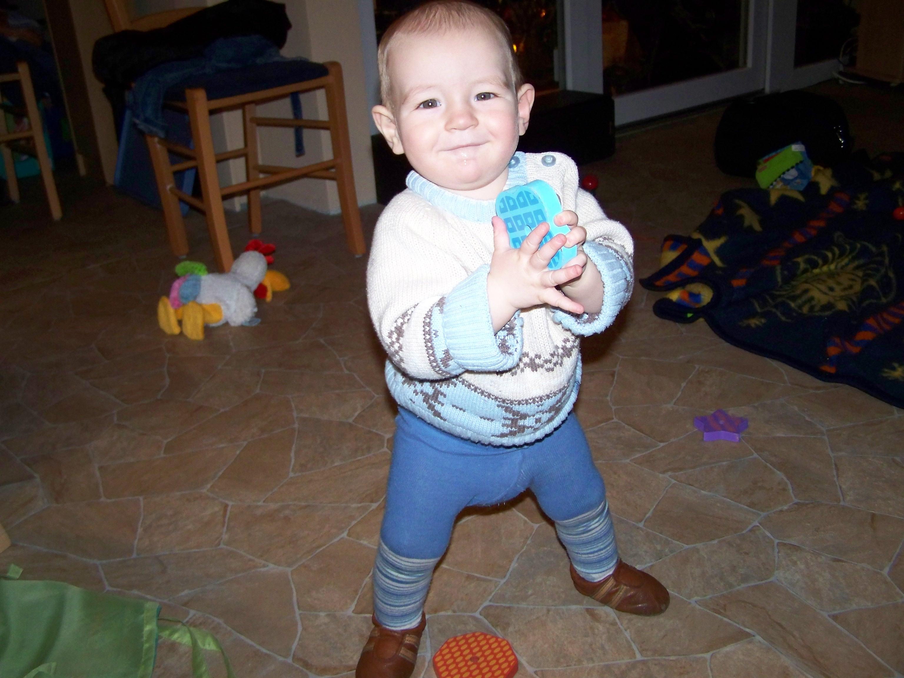 Nun will der kleine Mann es aber wissen. Super, mit den ersten Schritten.
