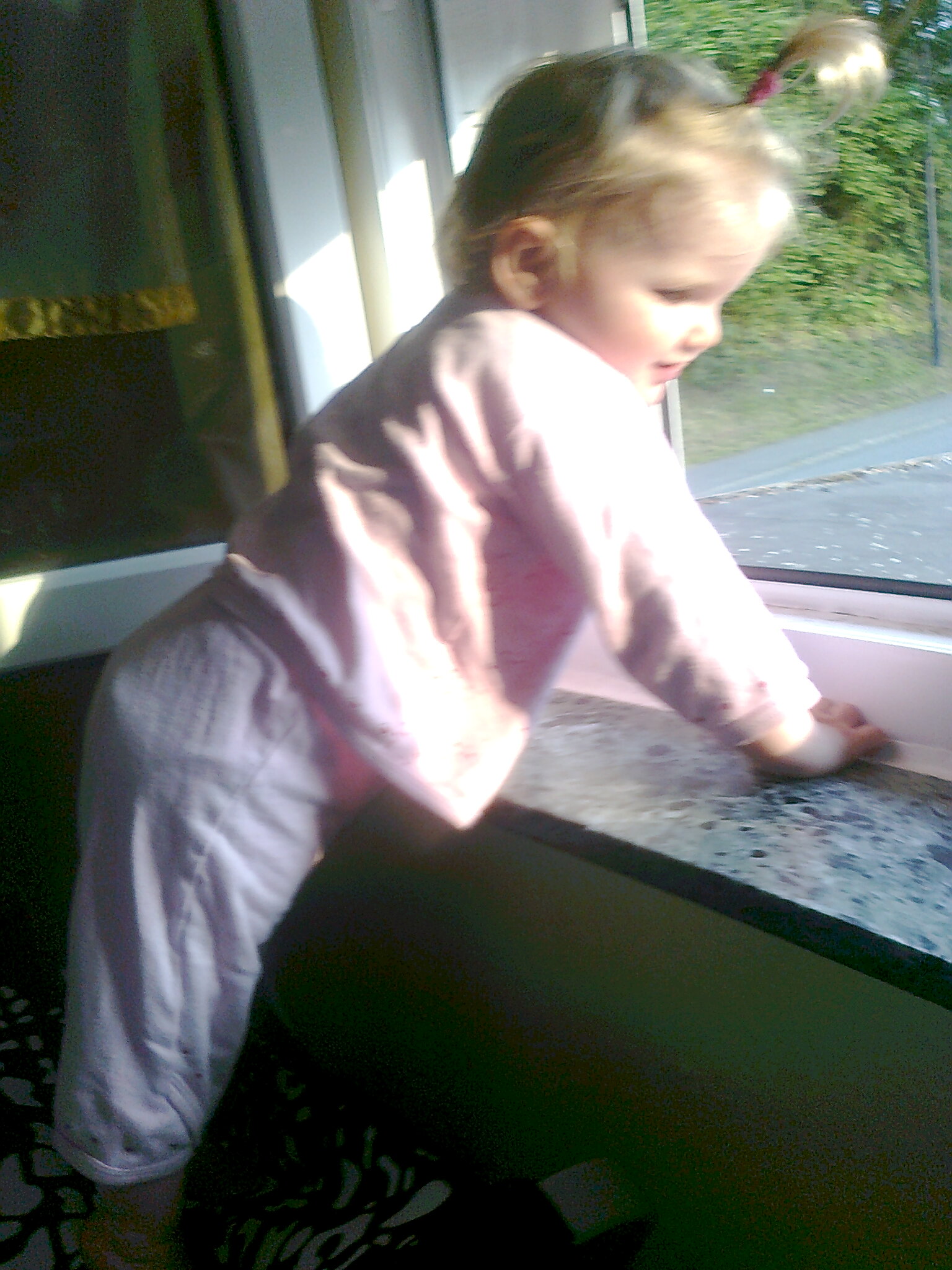 Elise hingegen hat sich viel bewegt, wie auch jetzt noch. Sie zieht sich seit Pfingsten auch an allem hoch und klettert neuerdings die treppenstufen hoch (
