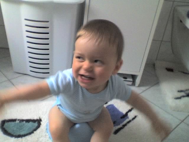 So nun wollt ich euch mal zeigen, wieviel Spaß Tobi auf dem Töpfchen hat