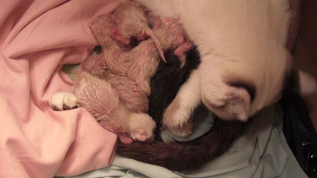 Nun aber erst mal die Meldung, daß es unserer Lilly-Maus-Mama und ihren Babies ausgezeichnet geht. Lilly hatte kleine Anfangsschwierigkeiten, aber nur, weil sie nicht wußte, was sie noch machen kann (außer stillen) damit es ihren Babies gut geht. Aber es ist alles im Lot. Sie hat leichte Nachblutungen, aber auch das soll wohl normal sein laut I-Net-Infos. :?: :grübel: Weiß das hier vielleicht jemand genauer ?
