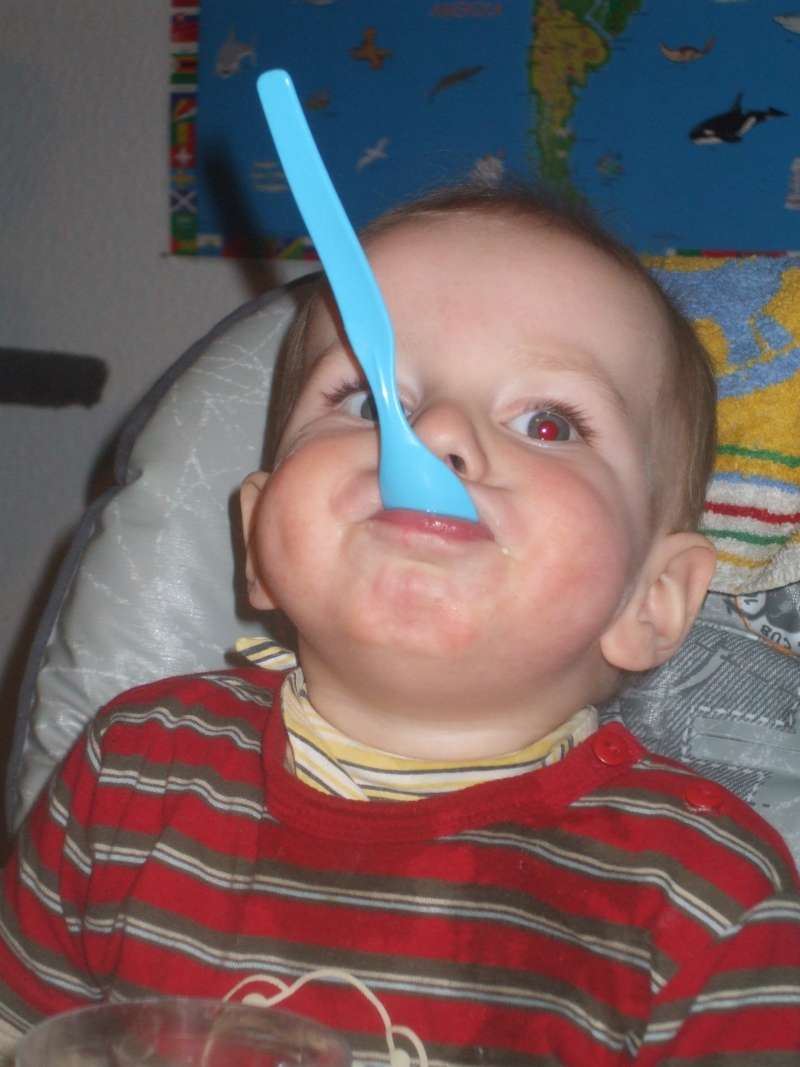 ganz die Mama...ein "Allesvernichter". Gibt aber auch Tage, da ist sein Appetit nicht so groß, dann holt er es eben am nächsten Tag nach....
