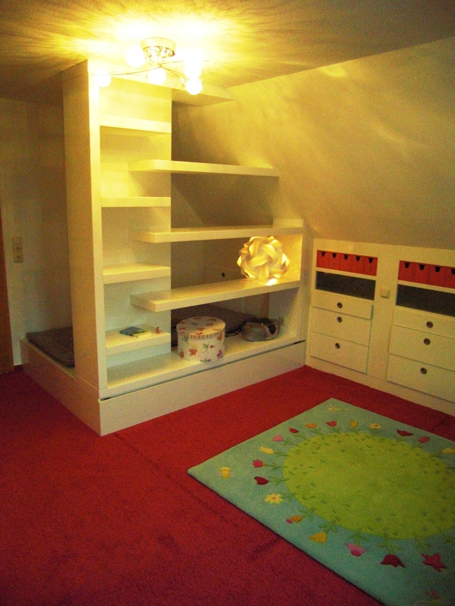 Wir haben den geleichen Blumenteppich, er fusselt allerdings auch ganz shcön, jetzt nahc 2 jahren wird es langsam besser. Habt ihr wirklich super toll hin bekommen, habt ihr das Regal selber gebaut? Klasse.