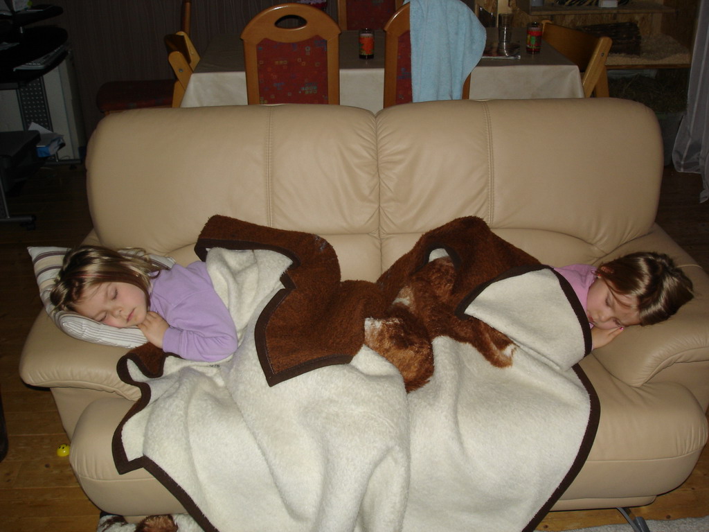 Zuhause ist Kathi dann sofort auf die Couch und hat geschlafen. Gegen 3 Uhr glühten die Mädels wie verrückt ... 39,5 bzw 39,8° Fieber