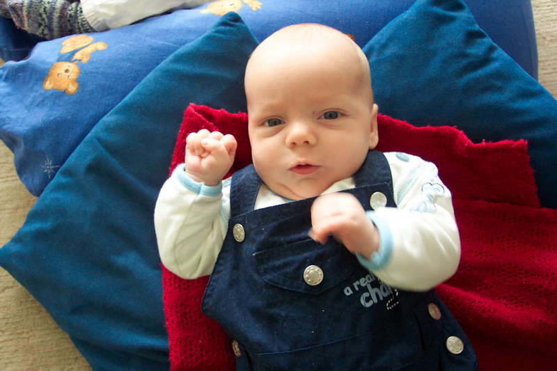 JP ist auch putzmunter, im Gegensatz zu seiner Mama. Er hat ja schon seit einigen Wochen probleme mit dem Schlafen, aber so schlimm wie letzte Woche war's noch nie...besonders in der Nacht vom So. auf Mo. Wir nehmen an, er hat irgendwas geträumt, sich erschrocken oder sich am Bett gestoßen (z.B. beim Rumdrehen), da er sofort losgebrüllt hat, wenn man ihn hinlegen wollte.