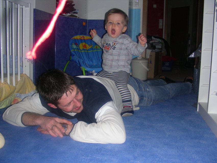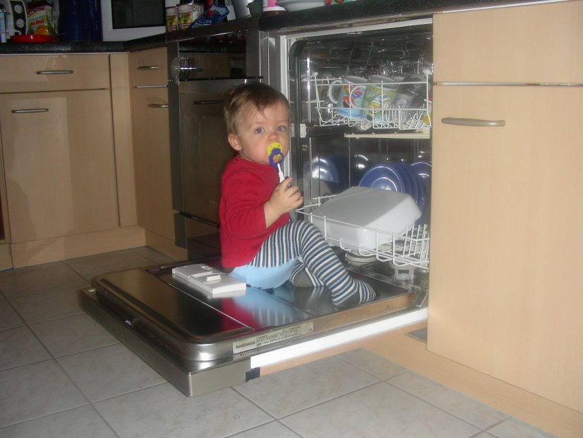 Sag mal hast du keine Angst, dass die Tür vom Geschirrspüler abbricht, wenn Luca da drauf klettert?