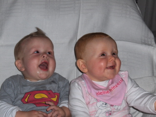 Bei uns ist am 28. Oktober Taufe der "Zwerge" - sind jetzt ja schon 7 Monate alt und wahrlich nicht mehr "taufkleid-tauglich" (Sohni trägt bei Oberteilen schon Größe 80 und sieht von der Größe her so aus, als wenn er gleich aufsteht und läuft - tatsächlich sind die beiden aber immer noch bei witzigen Vorübungen fürs Krabbeln und Robben...)